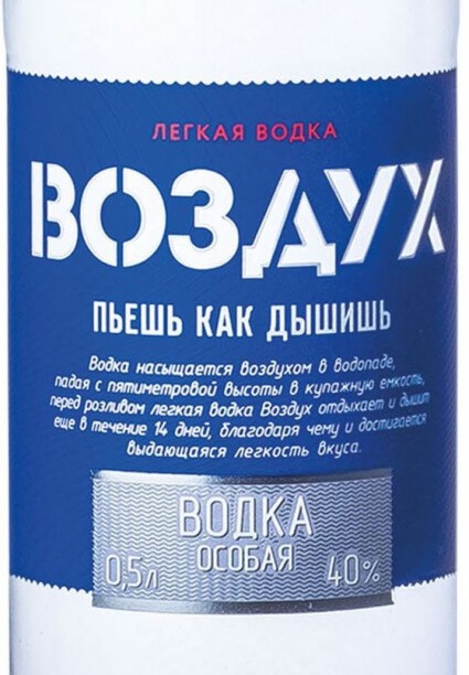 ЛЕГКАЯ ВОДКА ВОЗДУХ особая креп. 40% емк. 0.5л.
